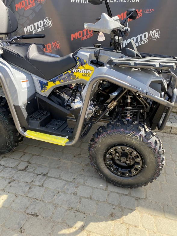 Квадроцикл MIKILON HARDY U-68 200L — повноцінний транспортний засіб призначений для пересування бездоріжжям. Модель має оновлений ексклюзивний дизайн, оснащений великою кількістю функцій. Квадроцикл має 2 повноцінних місця з ергономічною спинкою сидіння заднього пасажира, збільшений розмір та протиударний бампер із міцного сплаву. Квадроцикл MIKILON HARDY U-68 200L оснащений потужним двигуном, новим цифровим спідометром, передніми і задніми LED ліхтарями, новим кермовим механізмом, а також збільшеним діаметром коліс.