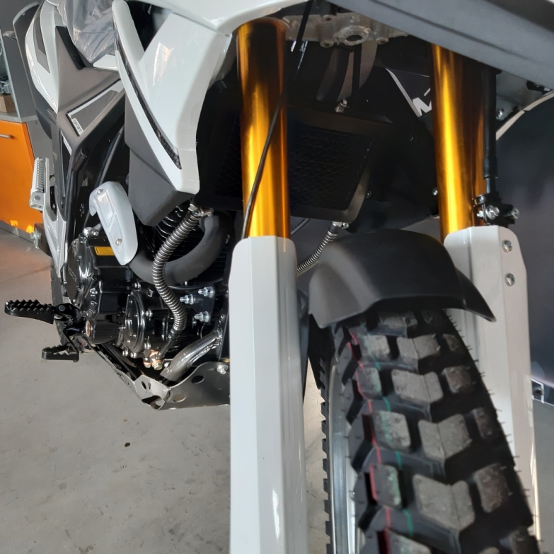 Задовольни свій дух пригод та подорожей з мотоциклом Forte FT 300 CF-2 . Цей компактний і багатоцільовий , одноциліндровий, мотоцикл для подорожей відрізняється спортивним дизайном, оснащений всебічним обладнанням і перевіреними робочими характеристиками. Його універсальна ергономіка, плавна подача енергії та інноваційні технології об'єднані в зручному, легкому корпусі, створеному для тих, хто хоче вкласти більше пригод в своє повсякденне життя. Додатково встановлено радіатор масляний для охолодження двигуна.