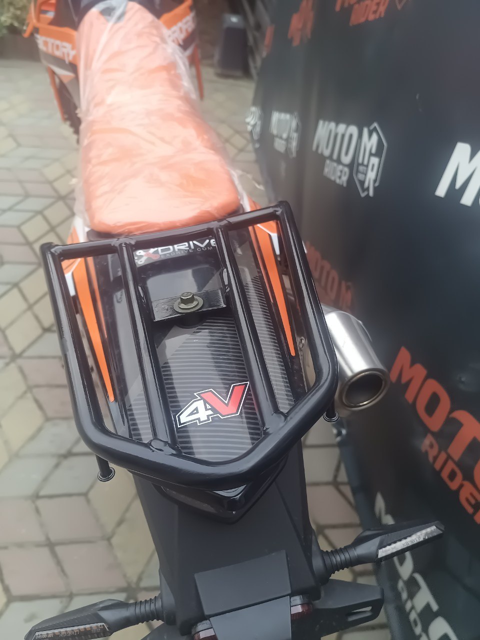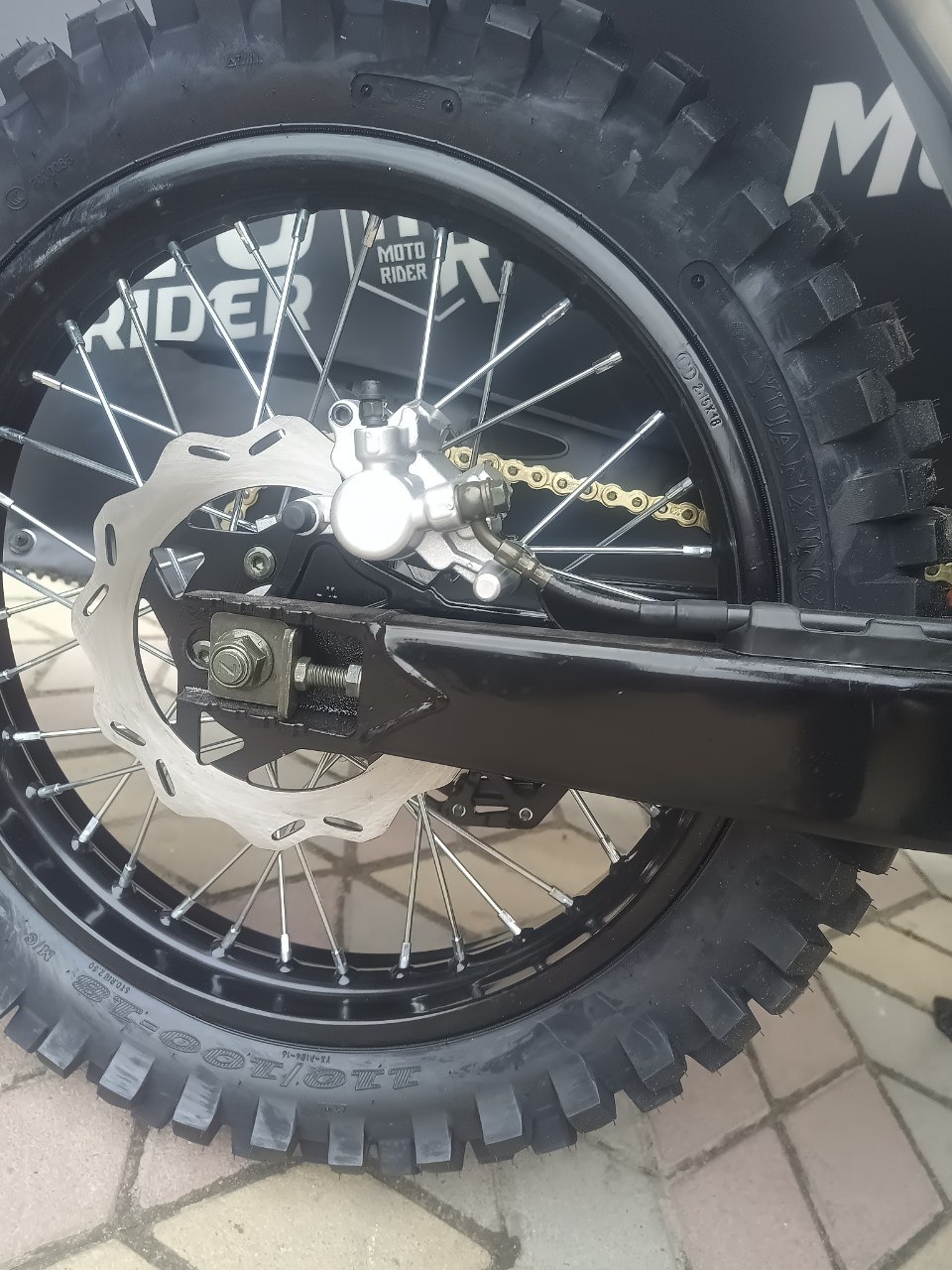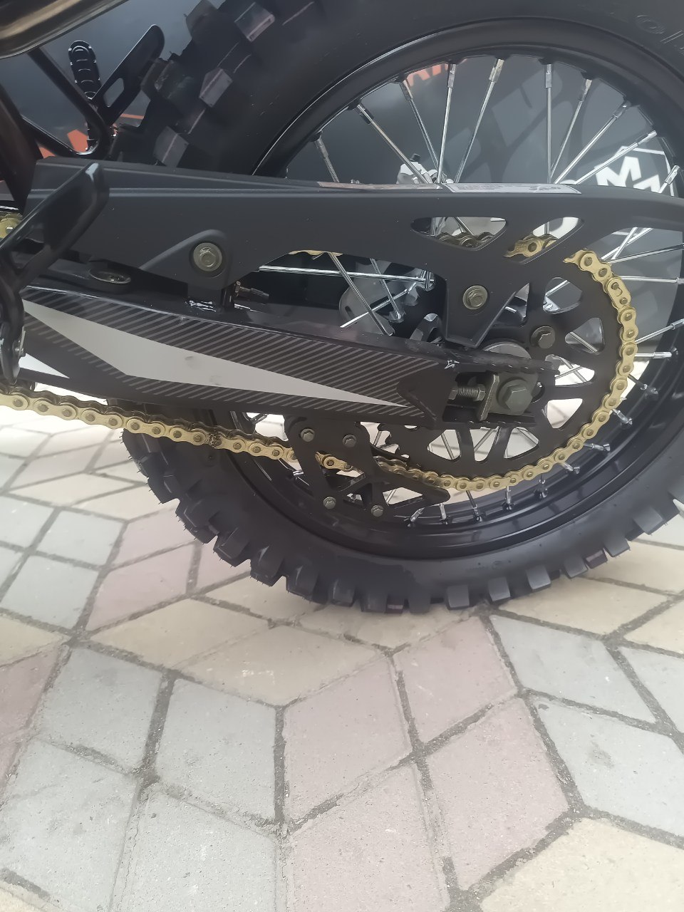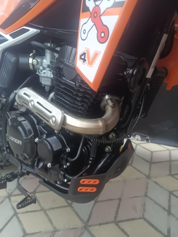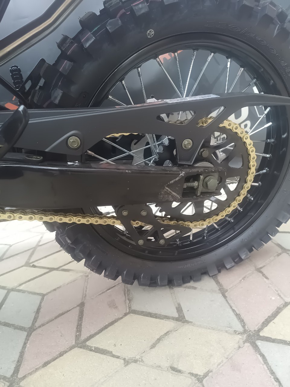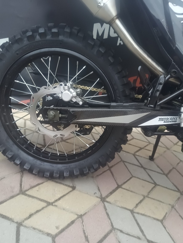 Задня підвіска: маятник з гідравлічним моноамортизатором Гальма (перед/зад): диск/диск Колісна база: 1340мм Розмір коліс (перед/зад): 80 * 100-21 / 110 * 90-18 Кліренс (дорожній просвіт): 290мм Висота по сидінню: 920мм Привід: задній , ланцюг 520 , зірки 14/42 |