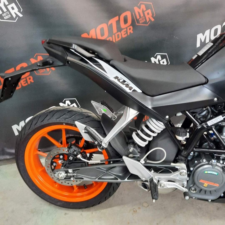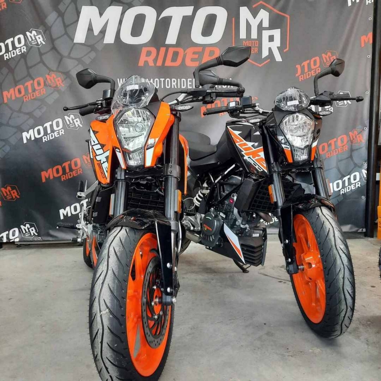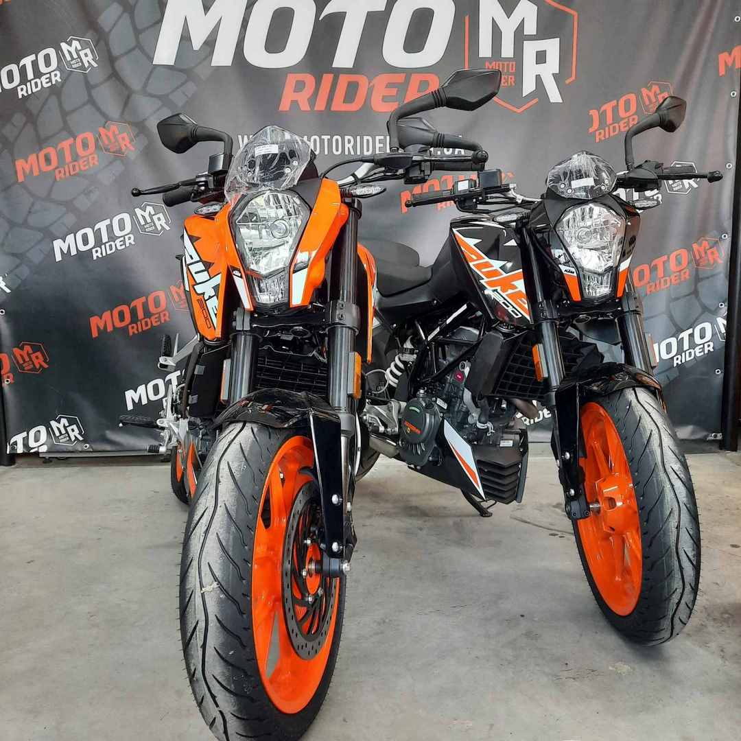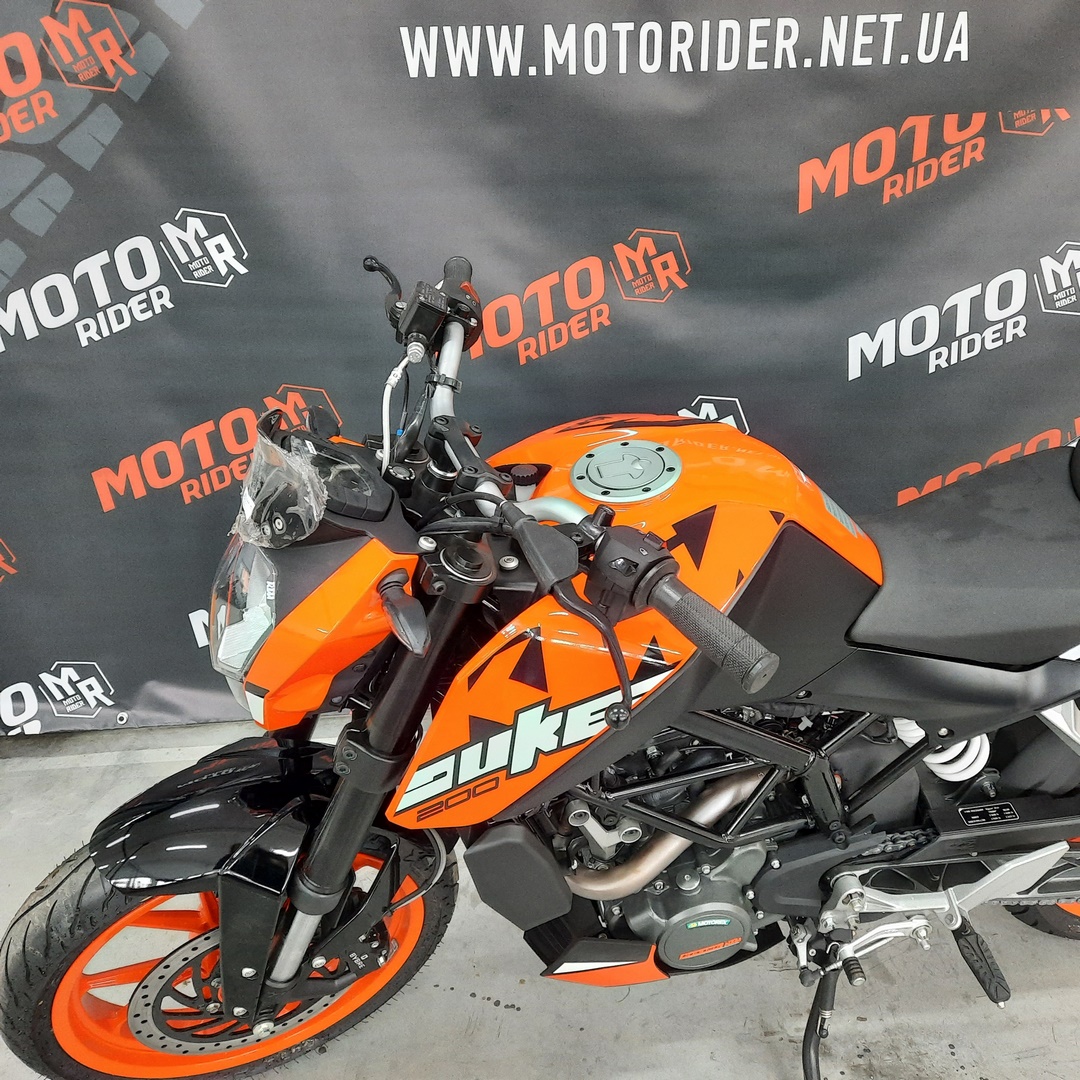 KTM 200 Duke - їде швидше, ніж виглядає. Цей боєць є єдиним 200 кубовим мотоциклом зі справжніми гоночними генами. Високотехнологічні компоненти - такі як надкомпактний одноциліндровий двигун з рідинним охолодженням і надлегка трубчаста рама, сучасна електроніка впорскування, литий алюмінієвий маятник, ультрасучасна підвіска WP перевертень 43-мм! Що стосується гальм, то і тут вищий рівень: два диска на литих колесах діаметром 300 і 230 мм працюють в тандемі зі скобами Brembo (Bybre) - чотирипоршневими (з радіальним кріпленням!) Спереду і однопоршневою ззаду. Потужний KTM 200 Duke з чудовою керованістю ідеально підходить для підкорення міських джунглів.