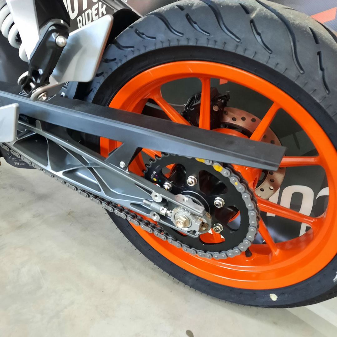 17-дюймові гоночні колеса з литого сплаву допомагають впевнено передати потужність, Використовуючи колесо шириною 110 мм спереду і вражаючі 150 мм ззаду. Оснащені гумою преміум-класу колеса KTM 200 DUKE будуть надійно приклеєні до дороги. Вони забезпечують чудове зчеплення як у вологих, так і в сухих умовах, а також забезпечують найвищу довговічність навіть для гонщиків, які знають, як використовувати шини до абсолютних меж.