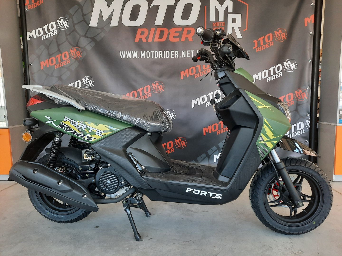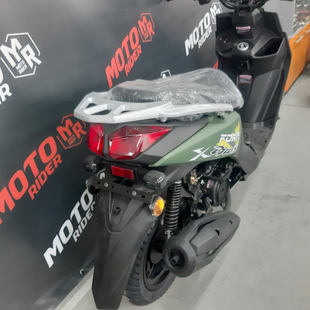 Яскравий агресивний дизайн у поєднанні з цікавим забарвленням робить цей скутер помітним у дорожньому потоці.